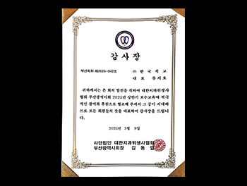 2025년 3월 9일 | 대한치과위생사협회 부산광역시회장 감사장 수상